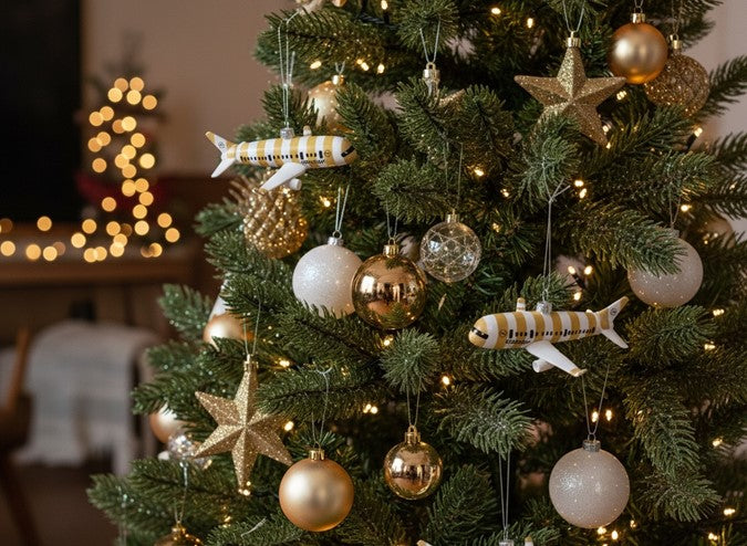 Verleihen Sie Ihrem Weihnachtsbaum eine besondere Note mit den exklusiven Christbaumkugeln im Flugzeug-Design.