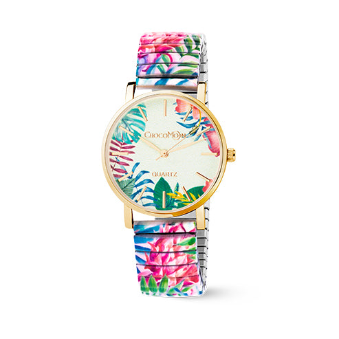 Die Chocomoon „Pink Pineapple“ Damenuhr ist eine Einladung, das Leben leicht zu nehmen - farbenfroh, lebendig und voller Urlaubsgefühl. Ihr mint-rosa Multicolor-Design erinnert an tropische Blätter, sonnige Tage und den Duft exotischer Blüten.