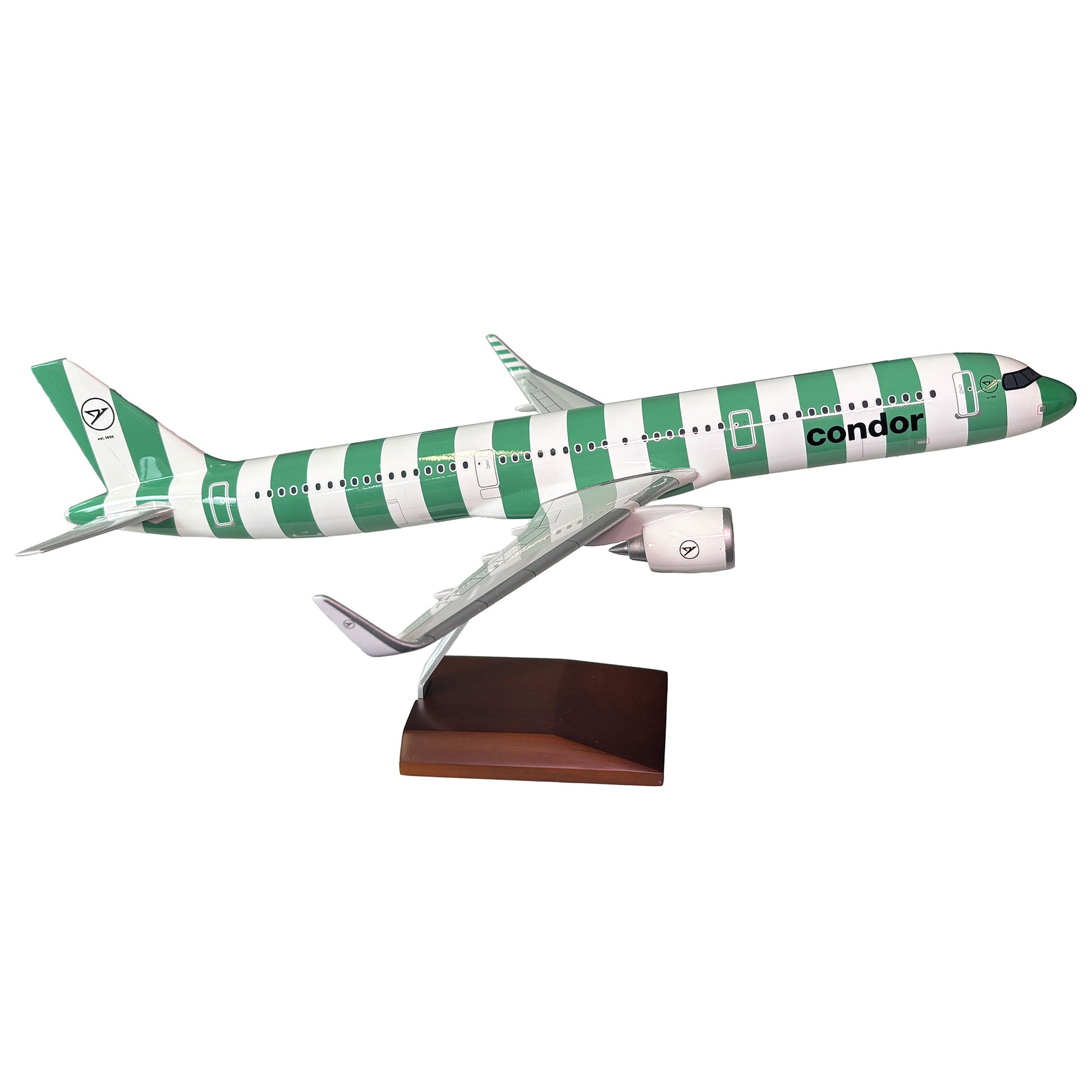 Die Flugzeuge des Typs Airbus A321-200 werden auf den Condor Kurz- und Mittelstreckenflügen zu den beliebtesten Urlaubszielen innerhalb Europas und nach Nordafrika eingesetzt. Als Modellflugzeug im neuen Streifen Look fliegen Sie ab sofort auch direkt zu Ihnen.